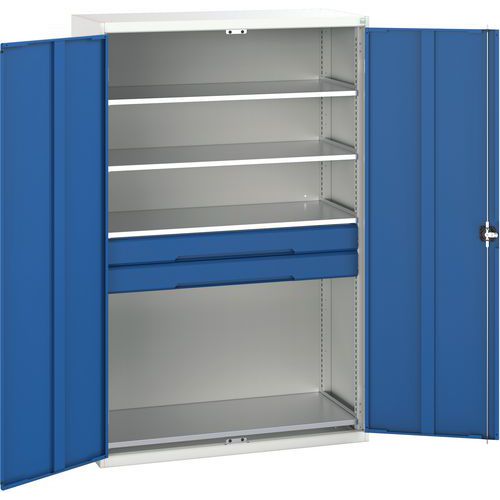 Fiókos műhelyszekrény Bott Verso, 200 x 130 x 55 cm, 4 polc, 2 fiók, szürke-kék Fiókos műhelyszekrény Bott Verso, 200 x 130 x 55 cm, 4 polc, 2 fiók, szürke-kék
