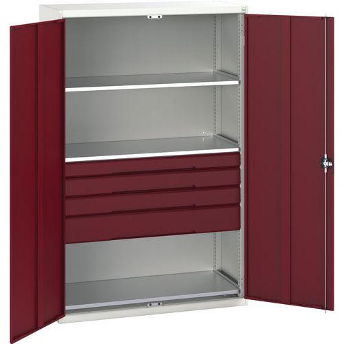 Fiókos műhelyszekrény Bott Verso, 200 x 130 x 55 cm, 3 polc, 4 fiók, szürke-piros Fiókos műhelyszekrény Bott Verso, 200 x 130 x 55 cm, 3 polc, 4 fiók, szürke-piros