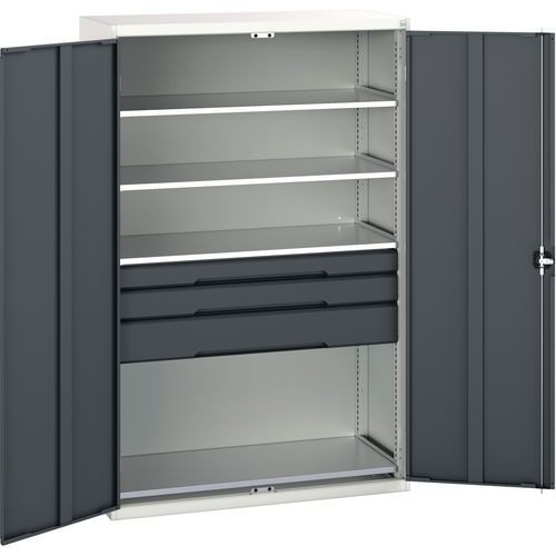 Műhelyszekrény fiókos Bott Verso, 200 x 130 x 55 cm, 4 polc, 3 fiók, szürke-antracit Műhelyszekrény fiókos Bott Verso, 200 x 130 x 55 cm, 4 polc, 3 fiók, szürke-antracit