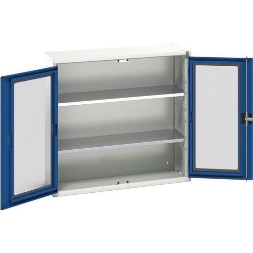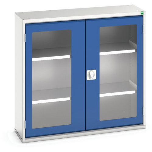 Műhelyszekrény átlátszó ajtókkal Bott Verso, 100 x 105 x 35 cm, 2 polccal, szürke-kék Műhelyszekrény átlátszó ajtókkal Bott Verso, 100 x 105 x 35 cm, 2 polccal, szürke-kék