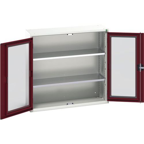 Műhelyszekrény átlátszó ajtókkal Bott Verso, 100 x 105 x 35 cm, 2 polccal, szürke-piros Műhelyszekrény átlátszó ajtókkal Bott Verso, 100 x 105 x 35 cm, 2 polccal, szürke-piros