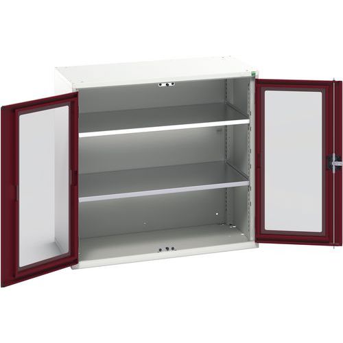 Műhelyszekrény átlátszó ajtókkal Bott Verso, 100 x 105 x 55 cm, 2 polccal, szürke-piros Műhelyszekrény átlátszó ajtókkal Bott Verso, 100 x 105 x 55 cm, 2 polccal, szürke-piros