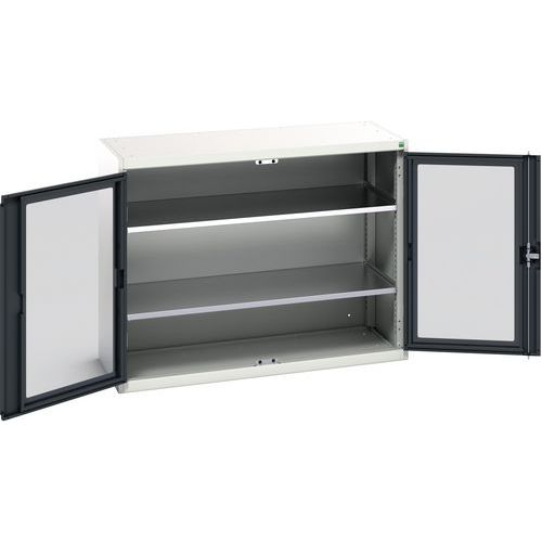 Műhelyszekrény átlátszó ajtókkal Bott Verso, 100 x 130 x 55 cm, 2 polccal, szürke-antracit Műhelyszekrény átlátszó ajtókkal Bott Verso, 100 x 130 x 55 cm, 2 polccal, szürke-antracit