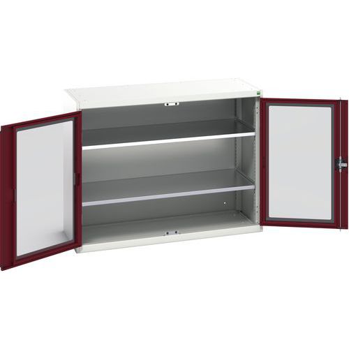 Műhelyszekrény átlátszó ajtókkal Bott Verso, 100 x 130 x 55 cm, 2 polccal, szürke-piros Műhelyszekrény átlátszó ajtókkal Bott Verso, 100 x 130 x 55 cm, 2 polccal, szürke-piros