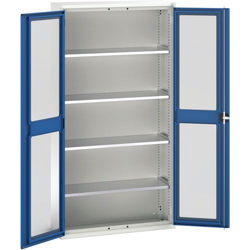 Műhelyszekrény átlátszó ajtókkal Bott Verso, 200 x 105 x 35 cm, 4 polccal, szürke-kék Műhelyszekrény átlátszó ajtókkal Bott Verso, 200 x 105 x 35 cm, 4 polccal, szürke-kék
