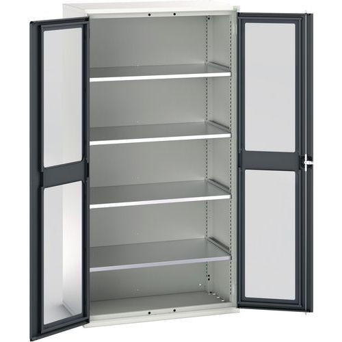 Műhelyszekrény átlátszó ajtókkal Bott Verso, 200 x 105 x 55 cm, 4 polccal, szürke-antracit Műhelyszekrény átlátszó ajtókkal Bott Verso, 200 x 105 x 55 cm, 4 polccal, szürke-antracit
