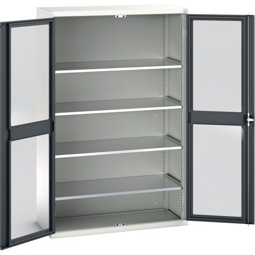 Műhelyszekrény átlátszó ajtókkal Bott Verso, 200 x 130 x 55 cm, 4 polccal, szürke-antracit Műhelyszekrény átlátszó ajtókkal Bott Verso, 200 x 130 x 55 cm, 4 polccal, szürke-antracit