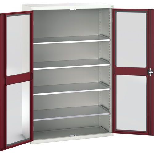 Műhelyszekrény átlátszó ajtókkal Bott Verso, 200 x 130 x 55 cm, 4 polccal, szürke-piros Műhelyszekrény átlátszó ajtókkal Bott Verso, 200 x 130 x 55 cm, 4 polccal, szürke-piros