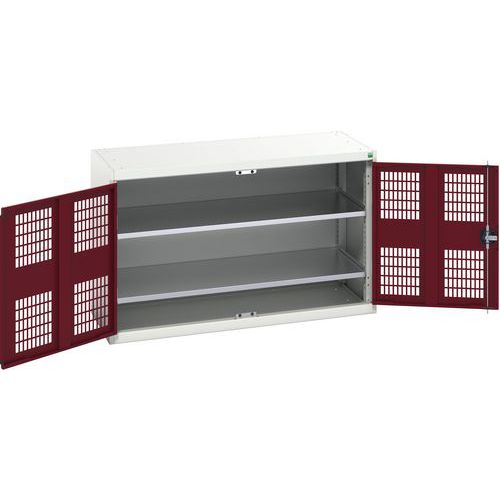 Műhelyszekrény polcokkal Bott Verso, drótajtó, 2 polc, 80 x 130 x 55 cm, szürke-piros Műhelyszekrény polcokkal Bott Verso, drótajtó, 2 polc, 80 x 130 x 55 cm, szürke-piros