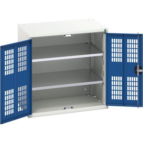 Műhelyszekrény polcokkal Bott Verso, drótajtó, 80 x 80 x 55 cm, 2 polc, szürke-kék Műhelyszekrény polcokkal Bott Verso, drótajtó, 80 x 80 x 55 cm, 2 polc, szürke-kék