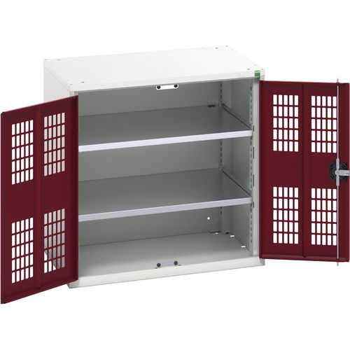 Műhelyszekrény polcokkal Bott Verso, drótajtó, 80 x 80 x 55 cm, 2 polc, szürke-piros Műhelyszekrény polcokkal Bott Verso, drótajtó, 80 x 80 x 55 cm, 2 polc, szürke-piros