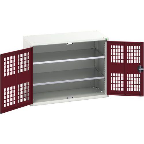 Műhelyszekrény polcokkal Bott Verso, drótajtó, 80 x 105 x 55 cm, 2 polc, szürke-piros Műhelyszekrény polcokkal Bott Verso, drótajtó, 80 x 105 x 55 cm, 2 polc, szürke-piros
