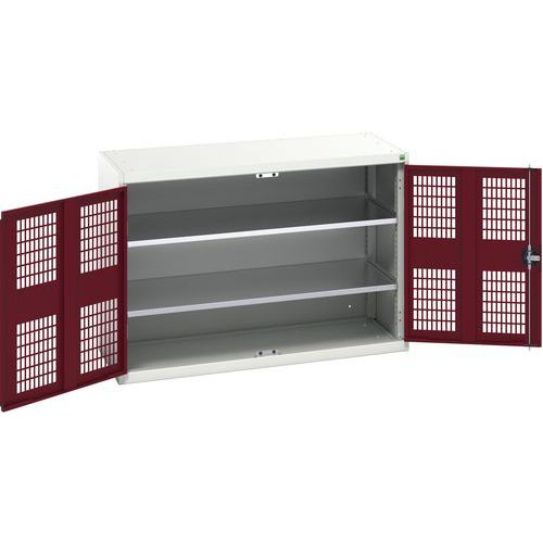 Műhelyszekrény polcokkal Bott Verso, drótajtó, 2 polc, 90 x 130 x 55 cm, szürke-piros Műhelyszekrény polcokkal Bott Verso, drótajtó, 2 polc, 90 x 130 x 55 cm, szürke-piros