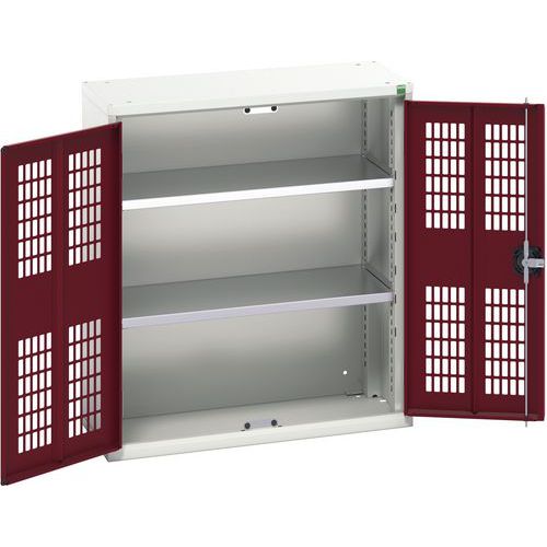 Műhelyszekrény polcokkal Bott Verso, drótajtó, 90 x 80 x 35 cm, 2 polc, szürke-piros Műhelyszekrény polcokkal Bott Verso, drótajtó, 90 x 80 x 35 cm, 2 polc, szürke-piros
