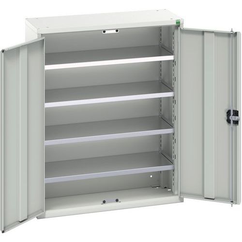 Műanyag dobozokkal felszerelt fém műhelyszekrények kisebb anyagokhoz. Hegesztett acélszerkezet, porszórt felületkezelés. Horganyzott polcok 75 kg teherbírással, 25 mm-es lépésekben állítható magassággal. Megerősített lengőajtók hárompontos hengerzárral két kulccsal. Műanyag dobozokkal együtt szállítva. No. 3 HxSzxM: 12,5 x 14,5 x 24 cm (színkeverék). Max. polcterhelés (kg) : 75 kg Max. terhelés (kg) : 1000 kg