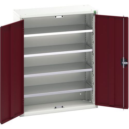 Műanyag dobozokkal felszerelt fém műhelyszekrények kisebb anyagokhoz. Hegesztett acélszerkezet, porszórt felületkezelés. Horganyzott polcok 75 kg teherbírással, 25 mm-es lépésekben állítható magassággal. Megerősített lengőajtók hárompontos hengerzárral két kulccsal. Műanyag dobozokkal együtt szállítva. No. 3 HxSzxM: 12,5 x 14,5 x 24 cm (színkeverék). Max. terhelés (kg) : 1000 kg Max. polcterhelés (kg) : 75 kg