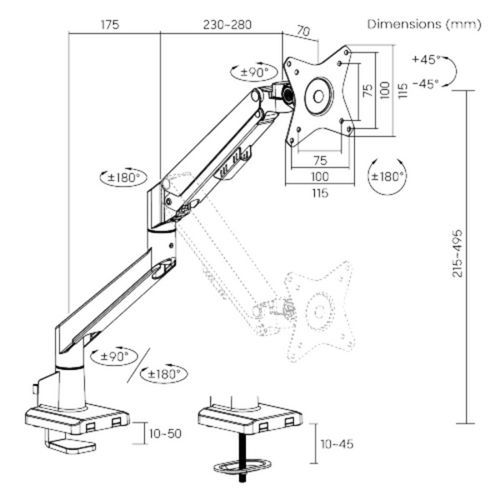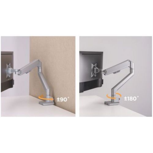 A tartó lehetővé teszi az egyszerű magasságállítás, a +/- 45°-os állítható monitordőlés, a 180°-os oldalirányú dőlés és a 360°-os monitorforgatás lehetőségét, így könnyen megtalálhatja az optimális pozíciót a kényelmes és ergonomikus használathoz.