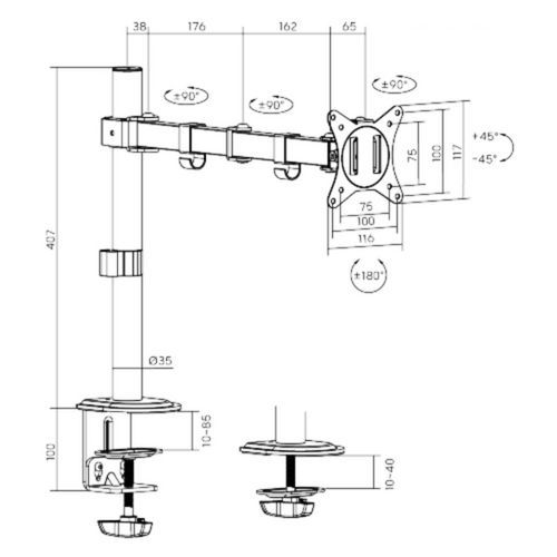 | Termék neve | Brateck LDT66-C012 monitortartó, egy csuklós karral, rúdra szerelve |