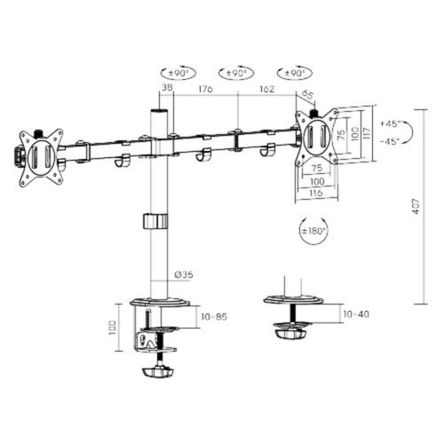 | Termék neve | Brateck LDT66-C024 monitor tartó, két csuklós kar egymás mellett a rúdtartón |