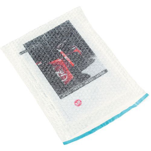 Háromrétegű buborékfóliás táska öntapadó fülekkel. Rugalmas, és minden termékformához szorosan illeszkedik. Két sima felületnek köszönhetően könnyen behelyezhető elemek.