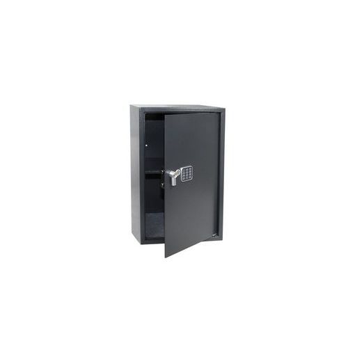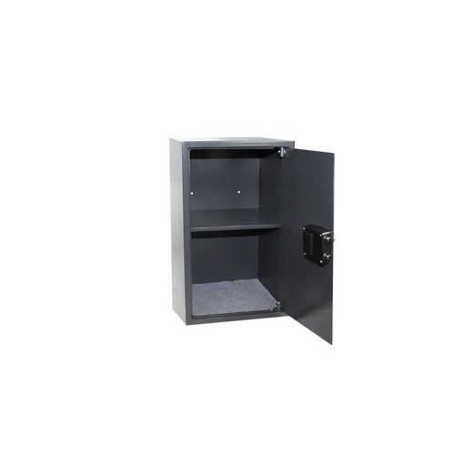Bútorszéf elektronikus zárral, billentyűs kódmezővel és karral a nyitáshoz. A felhasználói kód 3-8 számjegyű lehet, vagyis 100 000 000 kódkombinációs lehetőséget kínál. Időzár lehetőség 3 sikertelen próbálkozás után. Az elem alacsony töltöttségéhez kijelző. Falra vagy padlóra rögzíthető. Műanyag vezérlőkar. A belső tér kb. harmadolva, polcokkal osztható (a 11230087MR-re érvényes). A polcok nem állítható magasságúak, de kivehetők.