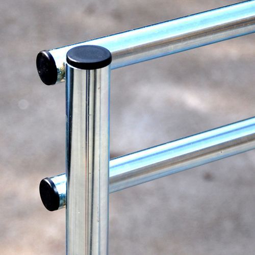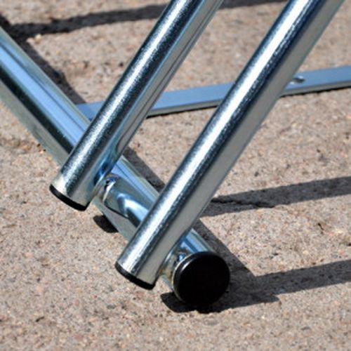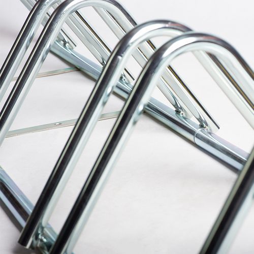 A csőszerkezetű állvány alkalmas minden kerékpárhoz és abroncshoz 80 mm szélességig.