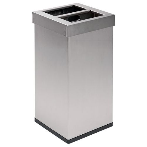 Design szemetes rozsdamentes acélból vagy alumíniumból a szelektív válogatáshoz. 2 alumínium tartályból áll (2 x 52,5 l). A szelektív válogatáshoz szükséges címkék (egyenként) mellékelve.