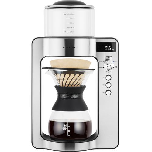 Catler CM 4012 elegáns és kifinomult, filteres rendszerű kávéfőző. A tökéletes szűrésnek köszönhetően tökéletes kávét főzhetünk vele. A kávéfőzőn manuálisan beállíthatjuk a vízhőmérsékletet (80 és 98 °C között), valamint a kávé intenzitását. A kávéfőző beépített mérleggel rendelkezik (+/- 3 g-tól 1 kg-ig), amely jó szolgálatot tesz az őrölt kávé optimális kimérése során. Az főzött kávé intenzitása a kávé és a víz aránya szerint szabályozható – ha az erőset szeretjük, akkor az optimális arány 1:10. Kevésbé intenzív italt a kávé és a víz arányának módosításával érhetünk el – 1:10 és 1:20 közötti arányt választhatunk. Rozsdamentes acél tartó a papír filterekhez. Könnyű és intuitív kezelés a forgógombbal. A kávéfőző késleltetett indítással, vízkőmentesítési programmal és automatikusan aktiválódó energiatakarékos üzemmóddal rendelkezik.