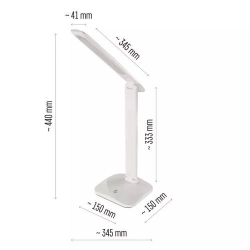 Praktikus asztali lámpa optimális világítási szöget nyújtó hajlítható nyakkal. Szabályozható fényerő és három választható színhőmérséklet: hideg/semleges/meleg fehér. Egyetlen gombbal vezérelhető. A tápkábel hossza 1,5 m. Védettségi szint: IP 20.