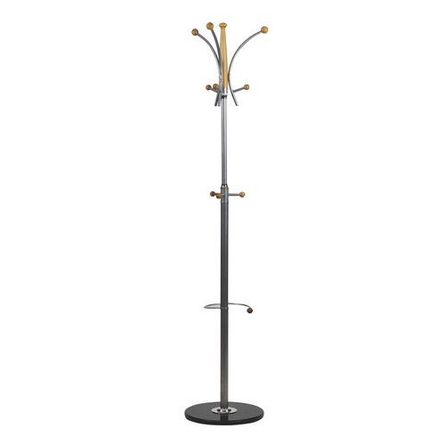 - Az állványokat hat fogas alkotja a ruházatra, három kisebb fogas a kiegészítőkre és egy esernyőtartó.