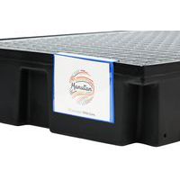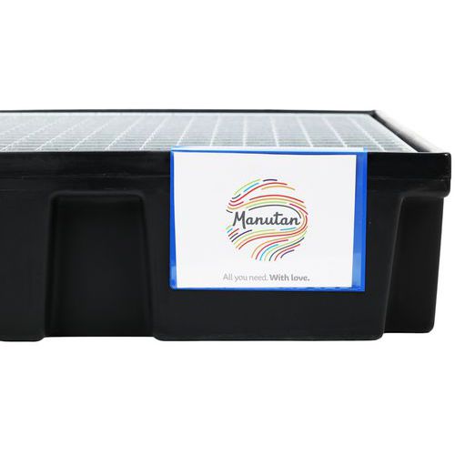 A raklapon lévő áruk jó nyilvántartása és tisztasága érdekében. Könnyen felpattintható rögzítés.