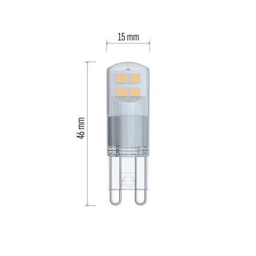 Energiatakarékos LED izzók tartós műanyag házzal, G9-es foglalatba. Minimális hősugárzás rendkívül hosszú élettartammal. A flicker-free funkció villogásmentes működést biztosít. Ideális megoldás álmennyezetbe süllyesztett lámpák kiegészítő fényforrásaként vagy dekoratív világításként. 22 W-os halogén izzó kiváltására. Meleg fehér vagy semleges fehér fényű kivitelben kapható.