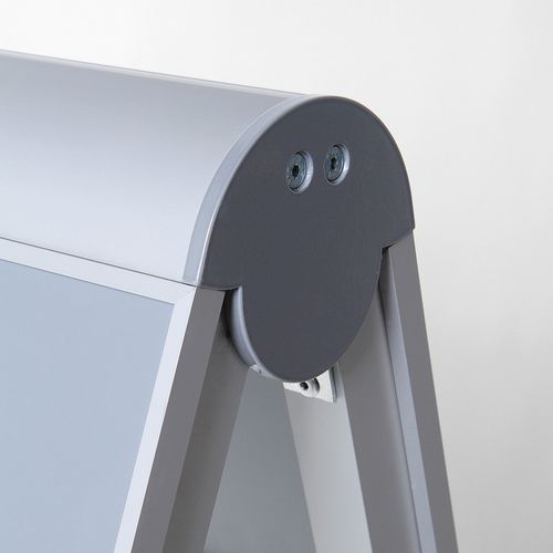 A kétoldalas A alakú állványok 37 mm profillal és integrált logótartó panellel alkalmasak szórólapok, fényképek, plakátok, speciális ajánlatok stb. bemutatására.