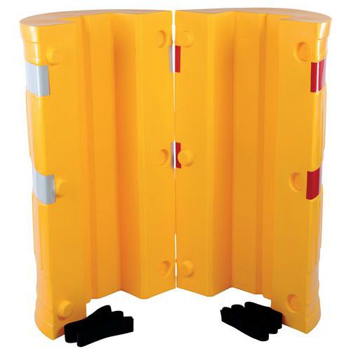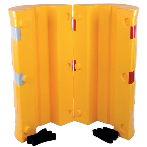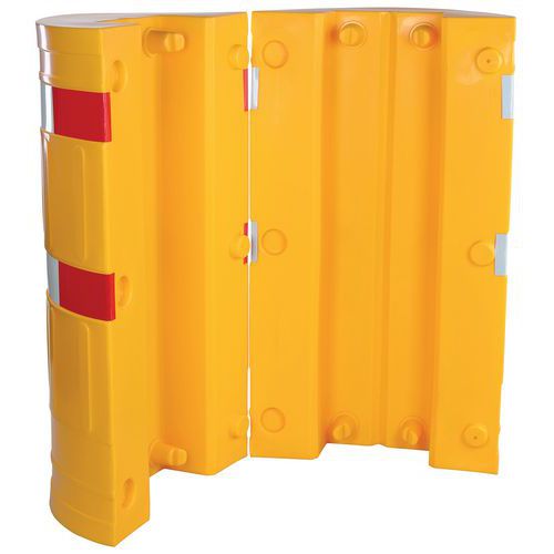 Munkavédelmi polietilén oszlopvédők munkahelyekre, például összeszerelő üzemekbe vagy raktárakba. A burkolatok két fényvisszaverő csíkkal vannak ellátva a jó láthatóság érdekében. Jól látható sárga színben. Rögzítés két tépőzáras szíjjal. Egyszerű és gyors felszerelés.