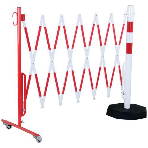 Összecsukható terelőkorlát kerekekkel, egyik oldalon fékekkel, a másikon terelőoszloppal. Lezárt területek ideiglenes kijelölésére szolgál. A terelőoszlop révén olyan helyeken is elhelyezhető terelőkorlát, ahol nem lehet a falra felszerelni. Az oszlop és a talp súlya 8 kg.