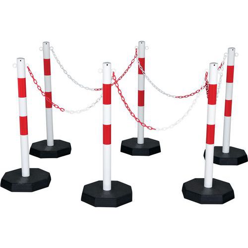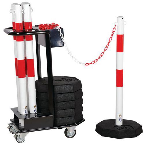 Crash Stop szállítókocsik oszlopokkal, lánccal és talpakkal, piros-fehér Crash Stop szállítókocsik oszlopokkal, lánccal és talpakkal, piros-fehér