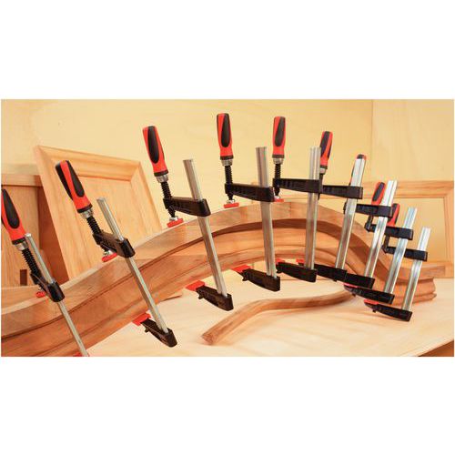 Öntöttvas bilincs nagy tartósságú csúszkával. Kivehető műanyag pofavédők a törékeny anyagokhoz. A csavaros gömbcsukló szerszám és feszültség nélkül kivehető és cserélhető. Biztonságos rögzítés a csúszkába épített zárófékkel. Két anyagból készült fogantyú az optimális munkavégzés kényelméért.