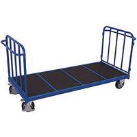 Csúszásgátló felületű platós kocsi, 2 fallal, gumikerekekkel, 187,5 x 90 x 110,5 cm, kék Csúszásgátló felületű platós kocsi, 2 fallal, gumikerekekkel, 187,5 x 90 x 110,5 cm, kék