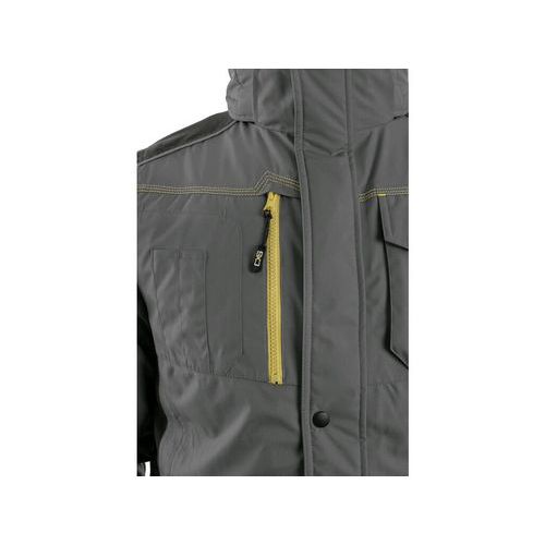 Férfi szigetelt kabát, víz- és szélálló, levehető kapucni, belső mandzsetta az ujjakban, felső zseb alatt műanyag hurok, alsó szélén összehúzás, ragasztott varratok, TPU membrán, fényvisszaverő kiegészítők. Cipzáras vagy patentos mellzsebek, két alsó cipzáras zseb, 3 belső zseb. Méret: S-5XL Szezon: téli