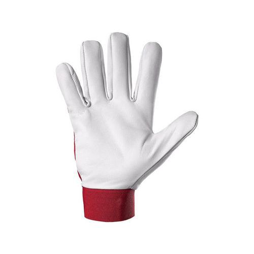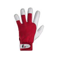 Kombinált munkakesztyű pamut kézfej résszel, valamint fényes kecskebőr tenyér résszel és ujjakkal.