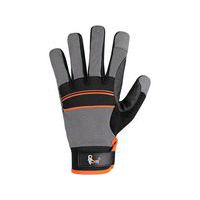 Kombinált kesztyű szilikon applikációkkal a tenyérben és az ujjakon a jobb fogás és kezelhetőség érdekében. A tenyér szintetikus bőrből (mikroszálas) készült, ami kényelmessé és zsugorodás-, nyúlás- és keményedésállóvá teszi a kesztyűt. A hátrész légáteresztő spandexből készült, az ízületeknél neoprén található. A hüvelykujj és a mutatóujj közötti terület PVC-vel van megerősítve. A tépőzáras neoprén mandzsetta könnyen illeszkedik a csuklóhoz. Buborékfóliával csomagolva.