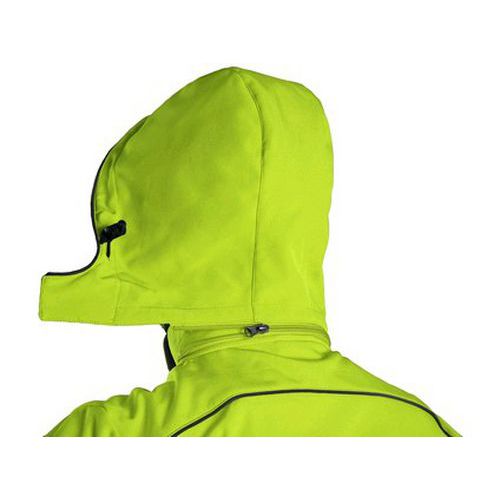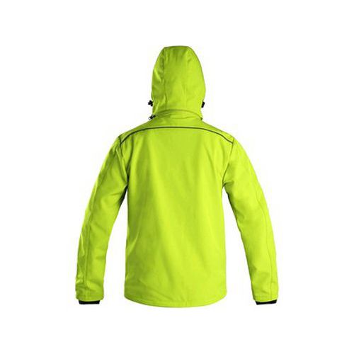 Férfi softshell kabát, víz- és szélálló, levehető kapucni, ujjakban elasztikus mandzsetta, alsó szélén megszorítás, fekete fényvisszaverő cső, gyapjúgallér és a kabát belső oldala, TPU membrán, vízálló anyag (ob-en kívül Méret: S-3XL Külső anyag: 96% poliészter 4% elasztán Vízállóság: 10 000 mm Páraáteresztő képesség: 3 000 g/m2/h TPU membrán: IGEN