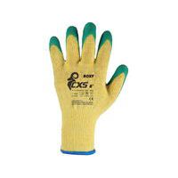 A zöld latex réteg lefedi a tenyér részt és az ujjak elülső oldalát.