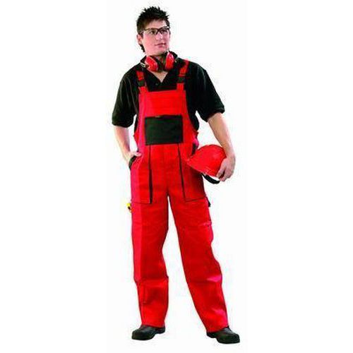 Piros színű, férfi munkaruha kertésznadrág fekete kiegészítőkkel. A cipzáras mellső zsebbe, a nagy elülső és a kisebb oldalsó zsebekbe telefon, mérőszalag és a munkához szükséges más apró tárgy tehető. A dupla, merevített térdrész hasznos a gyakori térdelés esetén. Gumis hózentróger műanyag kapoccsal. EN ISO 13688: Ez a nemzetközi szabvány meghatározza a védőruházatra vonatkozó általános követelményeket az ergonómia, hibátlanság, méretjelölés, elhasználódás, kompatibilitás, védőruházat jelölés és információk szempontjából, melyeket a gyártó biztosít a védőruházatokkal együtt.