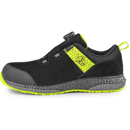 Tartós, kényelmes és igényes körülményekre tervezve. Ez az ESD védelemmel és fényvisszaverő elemekkel ellátott, alacsony szárú cipő kiemelkedik a szálcsiszolt, hidrofób mikroszálas felsőrésszel, perforációval a jobb légáteresztő képesség érdekében, valamint egy speciális rögzítőrendszerrel a cipő gyors meghúzásához és lazításához. A lélegző hálós anyagból készült bélés és a HI-POLY talpbetét maximális kényelmet biztosít egész nap. A mikroszálas sarokerősítés és a gumi orrvédelem növeli a cipő legterheltebb részeinek tartósságát és ellenállását. A felsőrész gyorsan szárad és könnyen karbantartható. A biztonsági jellemzők a kompozit orrmerevítő és a textil talp. A PU és gumi kombinációjából készült talp kiváló stabilitást és biztonságot nyújt - csúszásgátló, antisztatikus, ellenáll az olajoknak és a 300 °C-ig terjedő kontakt hőnek. Védelem: Megerősített lábujj- és talpbetéttel Fényvisszaverő kiegészítők: Igen Méret: 37-48