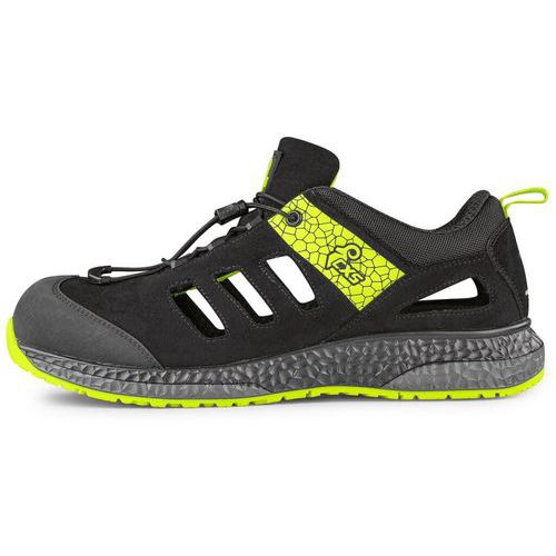 Tartós, kényelmes és igényes körülményekre tervezve. Ez a perforált, alacsony szárú cipő ESD védelemmel, fényvisszaverő elemekkel és gyorskioldó rendszerrel kiemelkedik szálcsiszolt mikroszálas felsőrészével. A légáteresztő hálós anyagból készült bélés és a HI-POLY talpbetét maximális kényelmet biztosít egész nap. A mikroszálas sarokerősítés és a gumi orrvédelem növeli a cipő legterheltebb részeinek tartósságát és ellenállását. A felsőrész gyorsan szárad és könnyen karbantartható. A biztonsági jellemzők a kompozit orrmerevítő és a textil talp. A PU és gumi kombinációjából készült talp kiváló stabilitást és biztonságot nyújt - csúszásgátló, antisztatikus, ellenáll az olajoknak és a 300 °C-ig terjedő kontakthőnek. Védelem: Megerősített lábujj- és talprésszel Fényvisszaverő kiegészítők: Igen Méret: 37-48 ESD