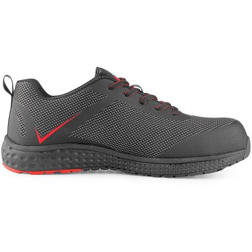 Biztonsági ultrakönnyű, alacsony szárú cipő lélegző felsőrésszel, védő orrmerevítővel és átszúrásgátló talpbetéttel, fényvisszaverő kiegészítőkkel. Anyag: könnyű és lélegző kötött anyagból készült kombinált felsőrész KPU kiegészítőkkel, könnyű nanotechnológiás védő orrmerevítő szénszálakból, átszúrásgátló talpbetét nem szőtt nanotechnológiás anyagból, fém alkatrészek nélkül, lélegző textil bélés poliészterből, talp: EVA/gumi, csúszásmentes, olajálló, antisztatikus, átszúrásálló. Védelmi szint: S1PS Védelem: Megerősített lábujj- és talpbetéttel Fényvisszaverő kiegészítők: Igen Méret: 36-48