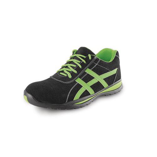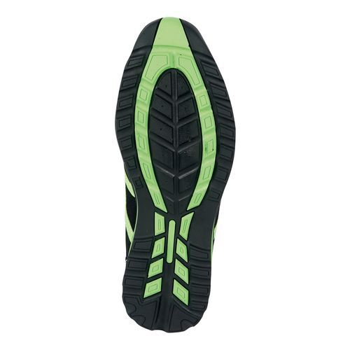 Munkavédelmi félcipő fekete-zöld kivitelben kombinált anyagból. A cipők olajállók, antisztatikusak, és akár 300 °C-ig is hőállók a kontakt hővel szemben. Csiszolt bőr felsőrész, 3D textil bélés, gumi talp. Megfelel az EN ISO 20347:2012 O1 FO HRO SRA szabványnak. EN ISO 20347: Ez a nemzetközi szabvány meghatározza a mechanikus kockázatoknak (ütés vagy nyomás) nem kitett munka lábbelire vonatkozó alapvető és kiegészítő (nem kötelező) követelményeket.