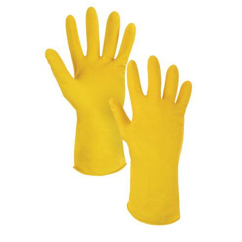 Latex munkakesztyű belső velúr kialakítással, alkalmas takarítási munkákhoz.