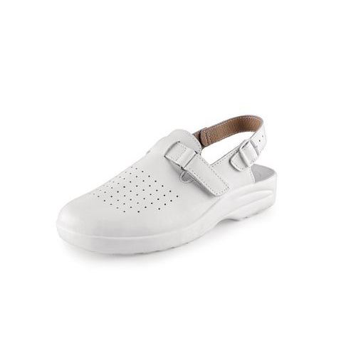 Női fehér munkacipő tépőzáras csattal és szíjjal a talp körül. méret: 35 - 46 kivitel: női anyaga: natúr barka felsőrész, poliuretán talp színe: fehér tanúsítvány: EN ISO 20347:2012 OB E SRC EN ISO 20347: Ez a nemzetközi szabvány meghatározza a mechanikus kockázatoknak (ütés vagy nyomás) nem kitett munka lábbelire vonatkozó alapvető és kiegészítő (nem kötelező) követelményeket.